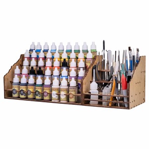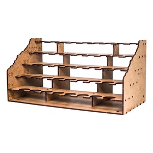 ファレホやアーミーペインターといった25mm経塗料ボトルを43本設置できる棚に加え、筆や接着剤といったツールもおける棚もセットになったビギナー向け整理棚です。