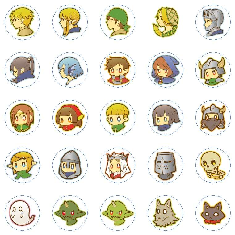 シールはキャラクターやモンスター、アイテム、記号などを取りそろえたもので、円柱コマに貼ってダンジョン折り紙等マップと併用することでゲームプレイを彩れます。